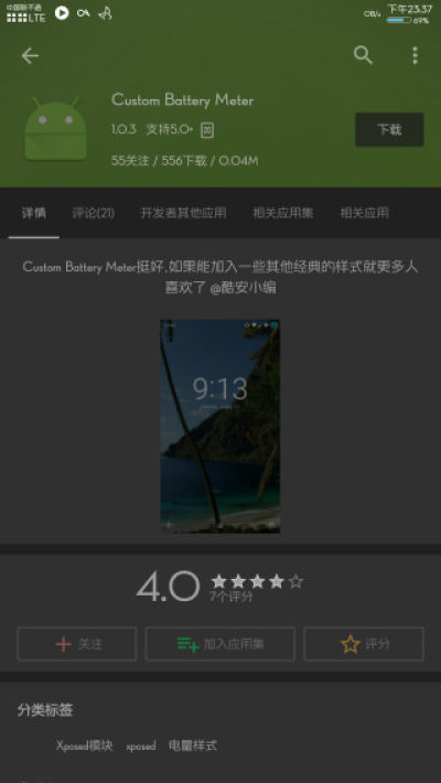 Custom Battery Meter是一款xposed插件,可以将状态栏电量的样子改为AOSPA的圆圈样式。