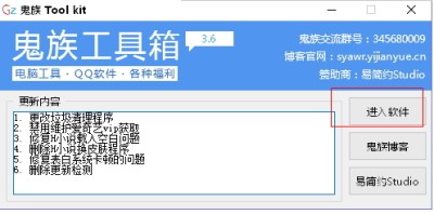 很多时候需要一些不怎么常用的电脑小工具,鬼族工具箱直接为大家集成了各种会用到的电脑工具,直接打开鬼族工具箱就可以找到想要的工具,鬼族工具箱是一款集合了电脑工具、QQ软件以及众多福利软件与一身的综合电脑工具箱软件,用户下载它之后可以更加方便的管理电脑。