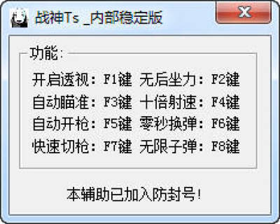 逆战战神辅助透视自瞄辅助是一款玩逆战必备的游戏辅助工具。觉得自己玩逆战总是打不到人,玩逆战的时候总是输的朋友们可以试试它。