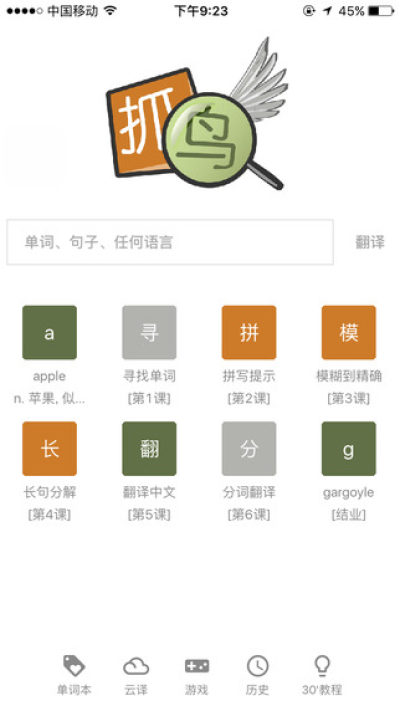抓鸟翻译手机版是手机上比较少见的支持多国语言,而且还完全免费的手机翻译软件。对于经常要进行文章翻译的用户很实用。