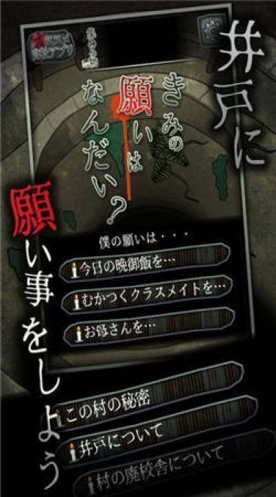 玩家需要到村子里寻找被指定的东西并交给水井实现愿望。而根据玩家的愿望的不同,剧情的展开也将发生微妙的变化。本作一共有三种结局,而井里隐藏的真相到底是什么呢?你会发现吗?