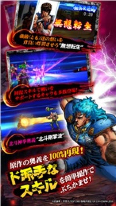 《北斗神拳痛击官方手机版v1.0》是一款著名人气漫画改编的格斗对战类手游游戏不仅融合了动作格斗等游戏元素,还融合了卡牌收集等游戏玩法。游戏内容和系统都十分的精彩,经典的热血漫画改编的格斗手游,燃烧起你最热血的期待值!