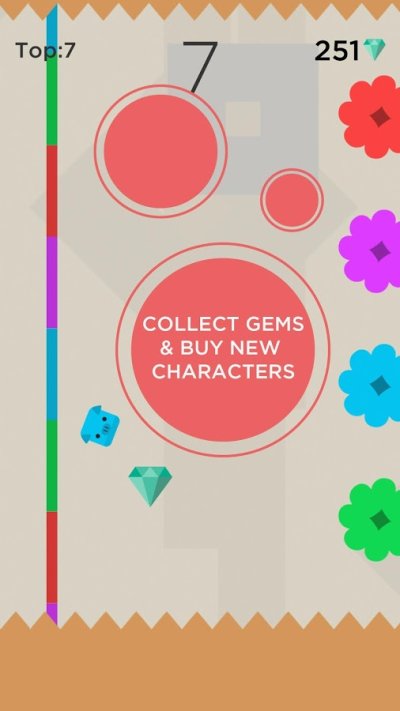 彩虹跳跃是个极简风格的无尽类游戏,首先要穿过彩虹线,随机获得一个颜色之后就只能碰对应的颜色,难度相对不是很高,一局能玩的挺久。