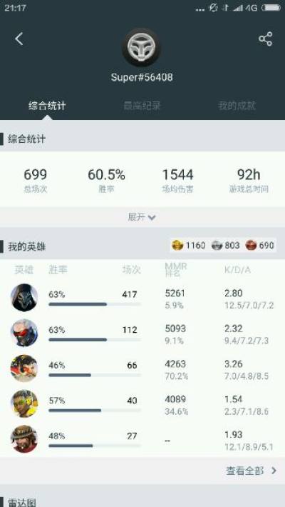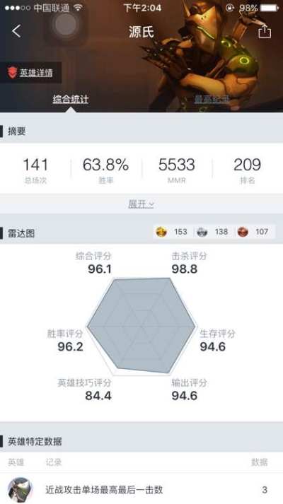 3.同步完成后即可看到你的游戏数据,主页为你使用最多的英雄及他的数据。