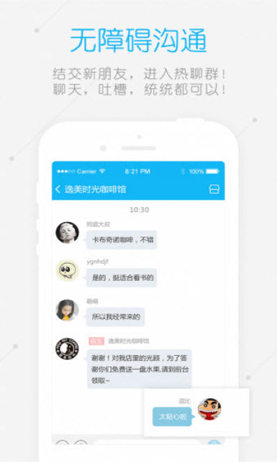 基于当前热点WiFi进入热聊群,实时无障碍沟通聊天,结识新朋友聊天消息:随时随地收发消息,一触即达!