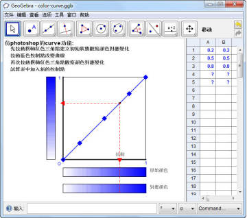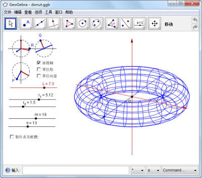 (8)从GeoGebra 3.0 开始可以自订工具了,你可以于绘图的时候指定输入及输出物件,在工具列上建立你自己的绘图工具,在该网站的wiki中,可以看到不少美丽的图案和不少人贡献的工具,如Bezier曲线等;