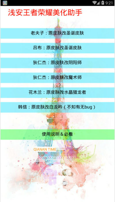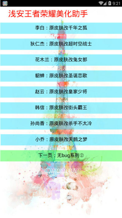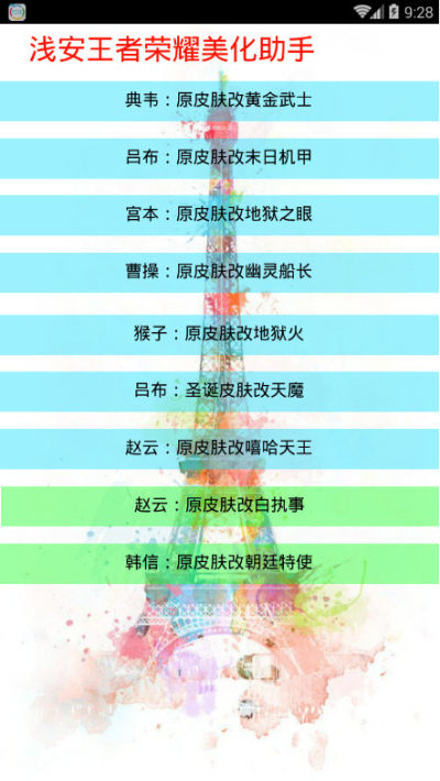 浅安王者荣耀美化助手可以帮助手游玩家更改自己的皮肤,腾讯的手游确实是太贵了,王者荣耀美化版相对于官方版来说其实就是修改美化了游戏中的安装界面、英雄皮肤、武器皮肤美化等等,没有修改游戏本身的一些数据,所以大家可以放心使用!更多炫酷的皮肤下载,赵子龙、赵信等知名将领的装备将已进行全新的改变,你可以体验全新的炫酷展现方式。