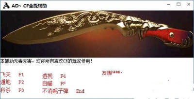 AD丶CF全能辅助是2016年暑期最新亲测可用的免费穿越火线游戏辅助软件。有了它之后就可以轻松一键拥有CF的BUG级功能,一秒变大神。