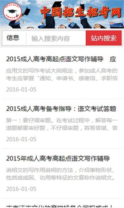 招生招考网app是一款专门为中考、高考、自学考试、成人高考、教育类社会考试等各类考生提供招生与考试服务的手机app。