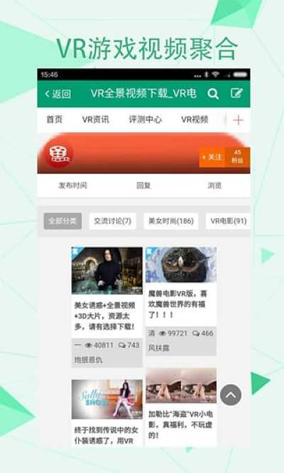 VR游戏视频聚合是一最大的VR信息资讯、VR资源共享工具,深受广大VRer的喜爱。这里有丰富的VR资源,VR电影,VR视频,VR眼睛评测,同时拥有众多共同爱好的VRer,在这里你可以尽情的结识新的朋友。