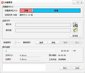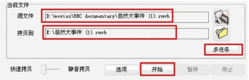 源文件和目标文件夹选择好之后,点击开始。注:可以多任务运行,意即可以同时火速拷贝多个文件。