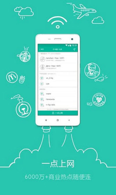 4.方便:一键免费连接机场、车站等各大场所优质商业WiFi