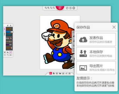 这里要特别讲讲调色板功能,你可以选择上面的色板,然后根据色彩的混合原理,在白色的调色板上进行混色,当得到你想要的颜色的时候,点解选色的位置就可以选取相应的颜色。旁边的垃圾桶是给大家清空调色板的哦。