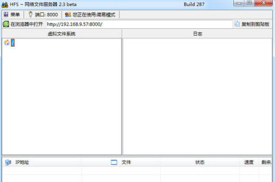 HFS文件服务器全名Http File Server是一款专业网络文件服务器,专为个人用户所设计的 HTTP 档案系统,这个软件可以提供您更方便的档案传输系统,运行主程序,在“虚拟文件系统”窗格下按鼠标右键,即可新增/移除文件夹。或者直接将欲加入的档案拖曳至此窗口,便可架设完成个人 HTTP网络文件服务器。 hfs可以选择将设置保存在注册表或者INI文件。主程序提供卸载功能,并会自动删除自身。所以使用起来不会对操作系统做什么改动。
