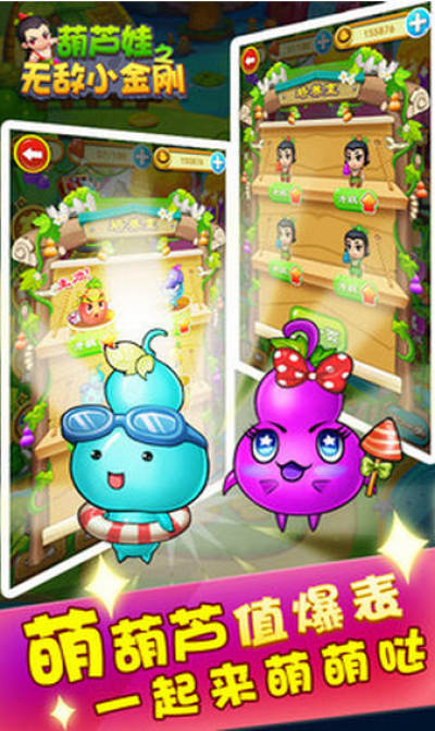 葫芦娃之无敌小金刚内购破解版是一款非常适合打发时间的弹射类休闲游戏,游戏中玩家要发射各种小葫芦来对付蛇精和蝎子精,然后救出爷爷,不同的小葫芦有着不同的属性和技能,弹射次数越多,伤害也就越高。