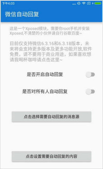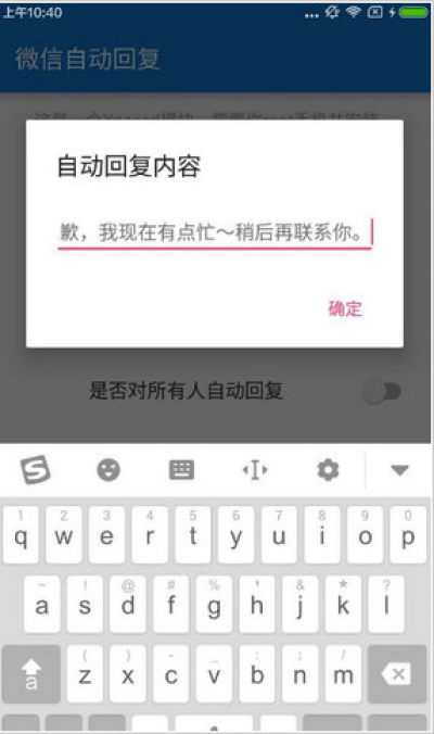 微信自动回复插件是一款帮助微信用户自动回复信息的手机插件。用户可以通过微信自动回复插件快速回复好友,只需要设置好回复的信息,就可以了,有需要的用户可以下载使用。