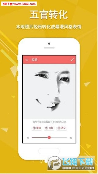 --脸部扣除:可将本地照片中的五官给涂抹扣除,放上暴漫表情,搞笑袭来;