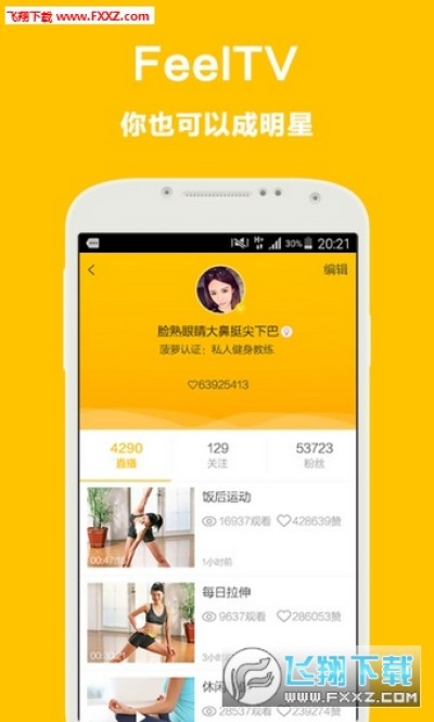 《FeelTV》是一款直播软件,这款直播软件最大的不同是这里都是健身达人的直播或者视频,对于想学习或者是健身爱好者来说,这款视频播放器是个不错的的选择!