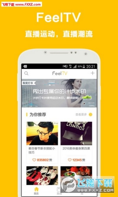 《FeelTV》是一款移动健身直播互动平台!在这里,健身教程实时直播,美女教练实时互动,主播低门槛,人人都可以做主播!