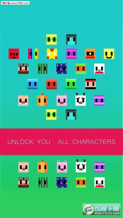 飞、跳、避开尖刺,选择兔子、果冻、忍者、骷髅,猪等角色。