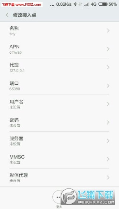 第一步 手机新建接入点 移动cmwap 联通3gwap 代理IP127.0.0.1 端口65080
