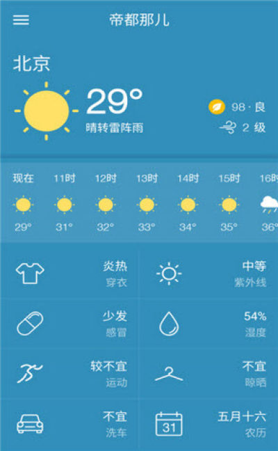 2.操作方便:上下滑动的操作方式,可更快速更便捷的查看天气趋势、风速、生活指数等信息;