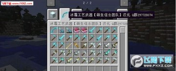 我的世界1.7.10冰冻工艺MOD这款MOD(Frostcraft),是一个中型工业模组,在物品栏增加了三个栏目:冰霜工艺机械、冰霜工艺武器、冰霜工艺杂项。机械就是冰霜炉、冰箱等;武器增加了几十种冰霜枪、铲、斧等,都是非常实用的;杂项就是娱乐的小道具,除了一些方块、装饰品、还有冰棒等。喜欢冰雪游戏场景的朋友快来下载吧!