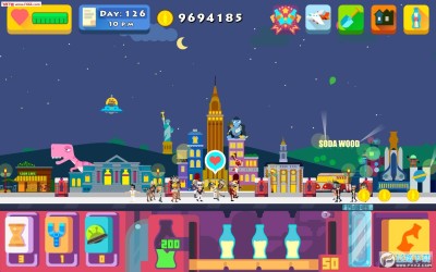 用最短的时间成为世界第一的苏打公司!玩家需要把罐装苏打填满库存,补货到遍布世界的贩卖机,给市民们送上各种口味的苏打,并为他们建造心愿建筑!每达成一个心愿市民购买的苏打瓶数就会增加,当心愿值满了以后会有个苏打趴体,不用补货就能收获金币,不过玩家要看准时期,贩卖机空的时候比较适合开趴体。