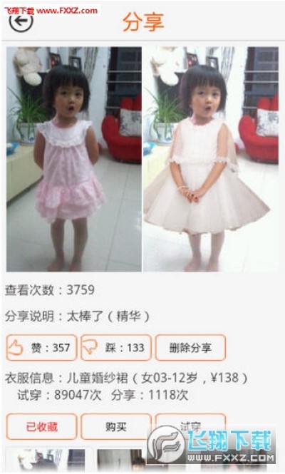 3.试穿满意您可以将试穿结果分享到互联网,也可以购买这件衣服。