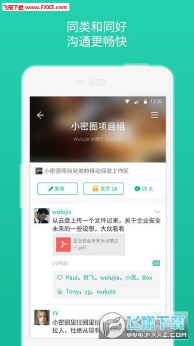 小密圈是移动互联网时代的团队知识管理与沟通工具,轻量、安全、为移动而生。让工作分享像在朋友圈一样简单高效,轻松自在。你可以用小密圈做知识管理,你可以用小密圈做工作沟通,你也可以简单地用小密圈做内部论坛。在这里发文件更安心,小圈子里谁看过一目了然;在这里谈工作更开心,像朋友圈一样的气氛,而不是压得满满的任务和待办;在小密圈里,你可以为公司、部门、团队、组织创建圈子,大家在小圈子里分享、学习、讨论、创造、发展。