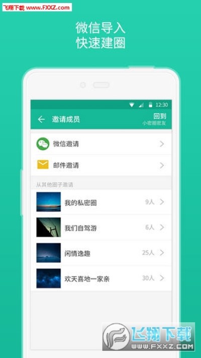 快速创建分类朋友圈,通过微信或Email快速邀请成员;