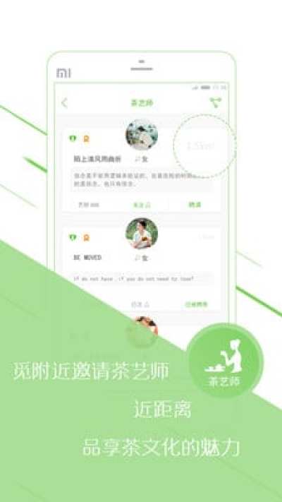 想要去喝茶但是又找不到志同道合的茶友该怎么办呢?去喝茶app不仅仅可以帮你快速搜索附近的爱茶人士,还能够推荐专业的茶艺师为您服务。