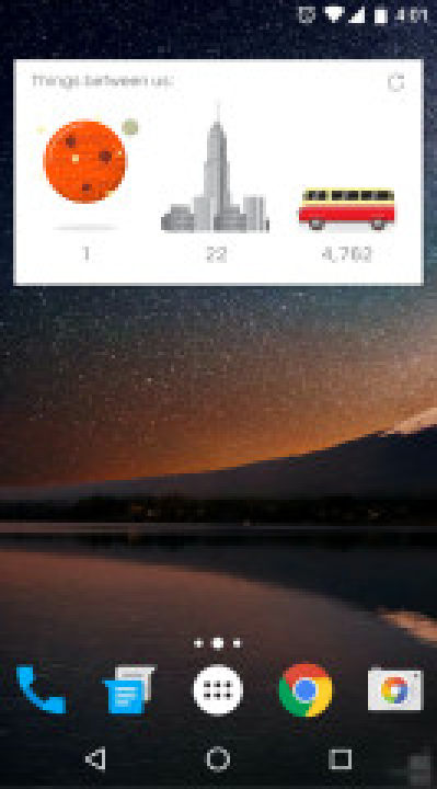 我们之间是一个可以了解两个人之间的距离和连接节点的应用。使用NFC来配对两个设备,并在桌面上放置小挂件,即可显示实时的距离信息,并还会有有趣的物体来展示距离,比如篮球、铅笔、山峰还有鲸鱼。