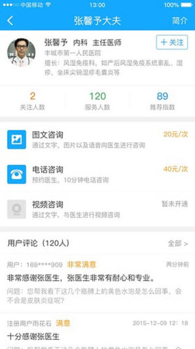 为用户提供转诊转检服务信息查询,方便用户及时查询到转诊转检信息。提供方便、快捷、安全的图文咨询、电话咨询,视频咨询服务以及家庭签约和专家咨询服务。