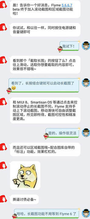 Flyme超级实用的滚动截图功能!长按组合键即可触发,看到「截取长图」按钮后,点击,往上滑动,选取你想要截取的内容即可。