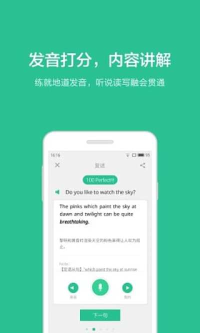 扇贝口语是一款帮助用户训练英语口语的软件。内容包括雅思口语、美语怎么说、生存英语系列等,涵盖了从零基础到高级各个等级的课程。采取跟读模仿、听音复述以及翻译表达三种学习模式,在不同的阶段帮助用户进行训练。