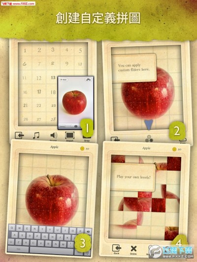 导入自定义图像,创建属于您自己的拼图。游戏提供了诸多精彩的编辑功能供您选用,如色彩滤镜和表面修正等等。将您的得意拼图作品与您的所有朋友分享!