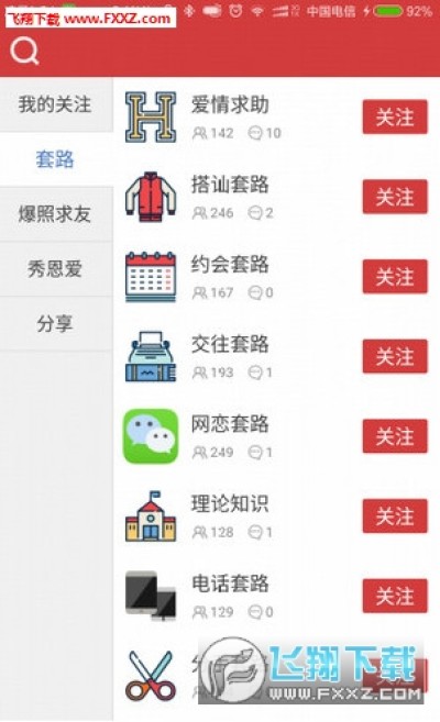 公司的汉子90%都是单身,基本都不会和妹纸交流,可能已经丢失了撩妹技能,怎么才能有好的方法交友谈恋爱呢?爱情套路app手机版,这绝对是一个泡妞神器。在这里,有着各种搭讪套路、约会套路、交往套路、网聊套路、相亲套路、分手套路、电话套路、社交礼仪,以及资源分享等等。