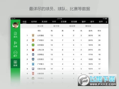 最快的赛事分析:球队进去战绩、历史交锋;最全的统计数据:联赛/杯赛积分榜,球员榜一应俱全。