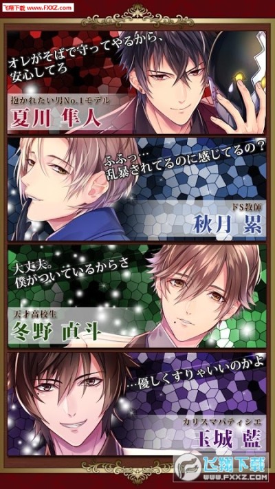 通过剧情中的选择项来推进和他的恋爱,从而享受到魅惑的故事和漂亮的CG!当然少不了服饰丰富的换装小游戏,绝对能满足女性玩家们的有乙女心。
