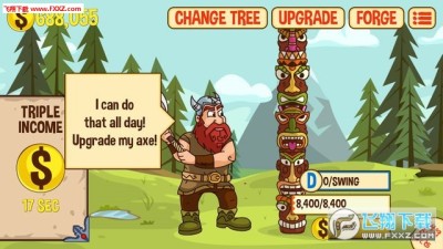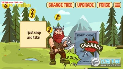 游戏中唯一的玩法就是砍树,玩家需要不断的砍树来获取金钱,然后利用这些金钱购买一些道具或者升级自己的能力,后期还能升级树木的种类,使伐木的效率更快!