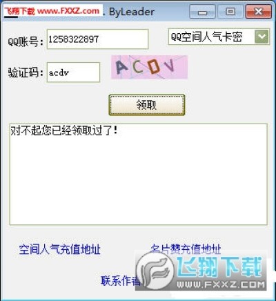 QQ空间业务领取软件是一款可以免费的领取空间人气卡密和名片赞卡密的福利神器。每天都能领取一次.人气是1000的卡密 名片赞是100的。