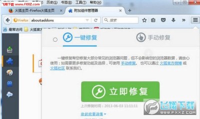 火狐修复工具针对您所遇到的问题选择手动修复,或是向我们报告问题获得帮助。网站无法登录.flash播放崩溃.迅雷下载无法关联等问题,帮您快速修复。轻松的一键修复大部分浏览器使用中的常见问题,