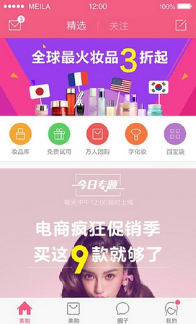 美拉美妆的特色之二在于“测评室”这个版块,亿欧网了解到她们签约了化妆品领域的专业测评师,根据市场动态及时对新产品进行测评信息。其跟进的维度主要有三个,分别是根据淘宝上流行的妆品、台湾的潮流热点以及美肤汇曾经积累的数据显示。据了解新版美啦的UI设计也是根据用户数据的行为习惯重新设计的,“微视频”版块的位置也从末位提到了首位。美拉美妆根据数据信息会迅速买那些受用户追捧的品牌进行测评。
