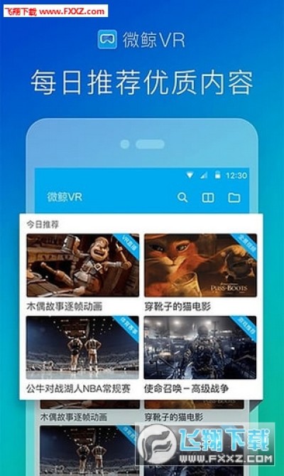 拥有众多独家内容与海量资源的微鲸VR,给你带来全新沉浸式感官享受;内置高清VR播放器,支持4K全景视频、2/3D影片播放;更有本地文件管理、VR游戏下载、适配各类眼镜支架等实用特性;是你口袋中的虚拟现实任意门。