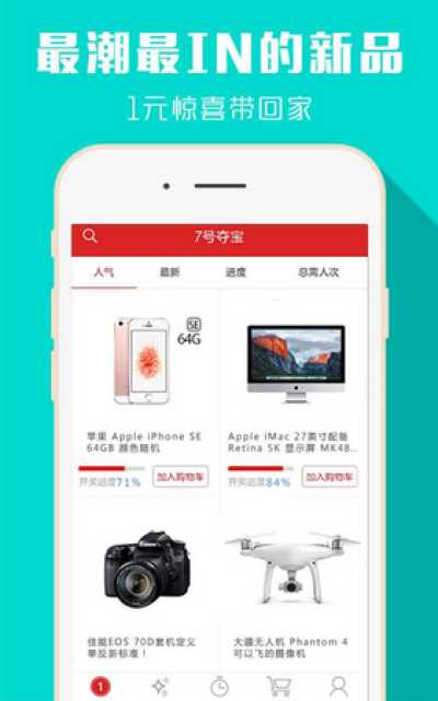 7号一元夺宝APP,一种全新的、刺激的购物方式!全场只需一元钱就有机会买到最潮流的数码产品、最炫酷的时尚精品!全部一元!是娱乐、也是购物一体化的一个全新的购物平台。