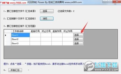 可以单击“选择...”按钮来进行拖选,也可以手动录入起止行列号来指定汇总范围