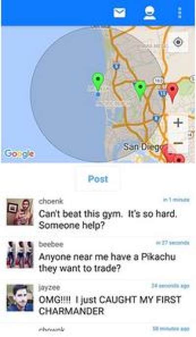go chat app是一款专为最近大热的Pokemon Go游戏推出的口袋妖怪 go聊天软件,Pokemon Go玩家可以查看以玩家位置为中心,其他玩家发布的精灵消息,可以自由设置消息查看距离,还可以和其他Pokemon Go玩家约跑孵精灵蛋。