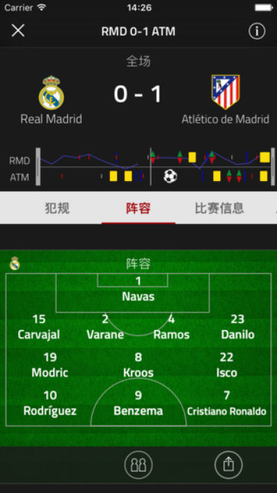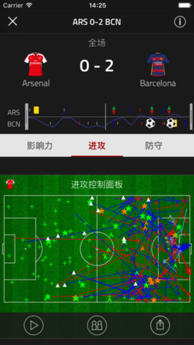 Stats Zone 也是一款非常优秀的足球赛事资讯应用,但是 Stats Zone 做的并不仅仅是把比赛的文字报导、图片摆在你的眼前,而是用图表的方式将整场比赛都进行数据化,给你呈现一个清晰直观的动态赛况报告。