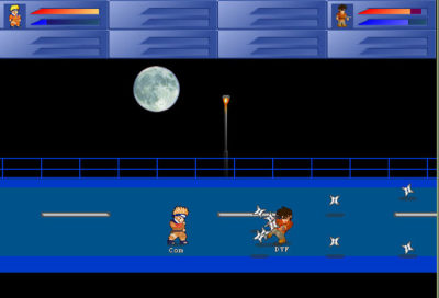 小斗士是一款仿街机的横版格斗游戏,游戏中共有十一个角色,最多能够八个角色同时混战!玩家可与计算机或其它玩家分组联合作战,亦可选用淘汰赛模式。格斗时天空会随机地降下各种武器、道具,吃到好处多多哦!每个角色也有三招必杀技,当蓝色聚气条满闪烁时就能够发出它们。